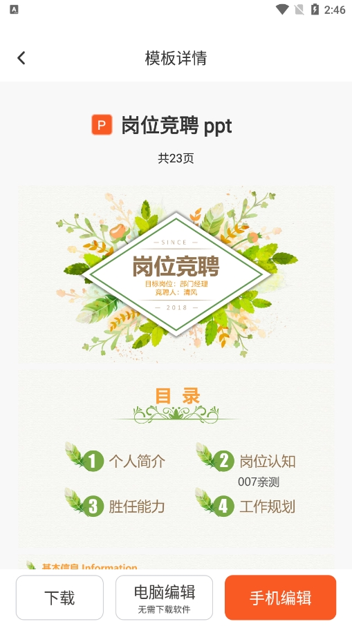随时随地模板和使用,能够及时查看详细的PPT内容信息,支持离线预览和编辑;
