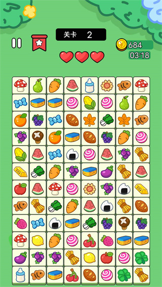 梦幻连连看是一款画风清新可爱的消除类小游戏,游戏中包含了丰富多样的元素,包括各种水果、蔬菜以及日常用品等,这些元素都以精美的造型呈现,搭配欢快的背景音乐,营造出轻松愉悦的游戏氛围。游戏玩法简单有趣,玩家需要通过移动方块,将两个相同的图案连接起来进行消除,连接路径最多只能有两个转折点。随着游戏进程的推进,关卡难度会不断提升,玩家需要善用每关提供的有限道具,巧妙规划消除策略,才能顺利通关。这款游戏不仅能够带来欢乐的消除体验,还能锻炼玩家的观察力和反应能力。