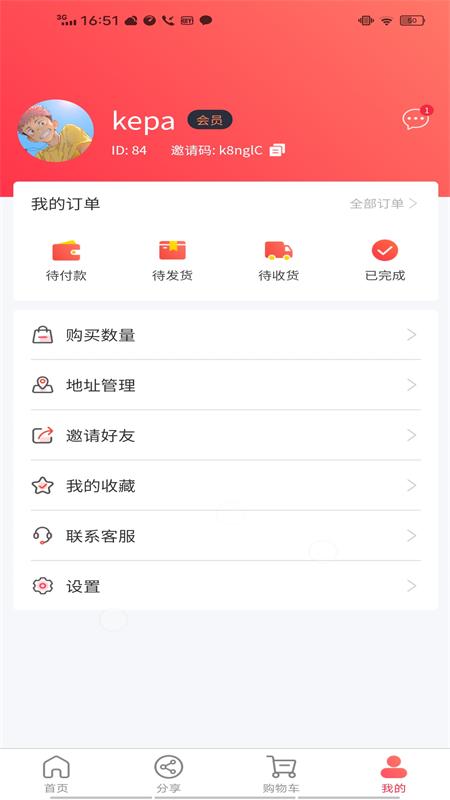 邀请朋友在软件中购物,可以同时获得更多实惠,分享健康还能获得奖励。