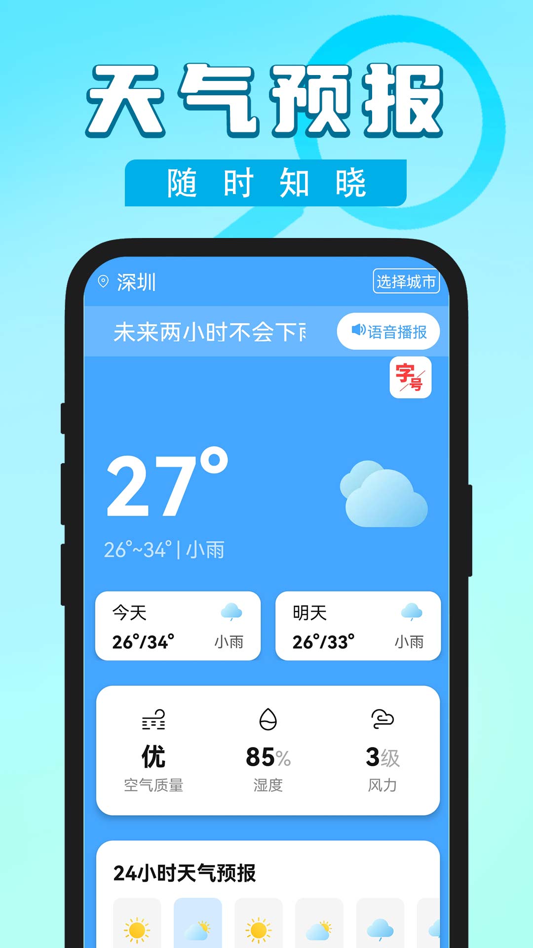 提供精准的天气预报服务,随时掌握天气变化,可以查询不同的天气,包括实时温度、空气质量、降水概率等详细数据。天气卡片会智能显示穿衣建议和出行提示,让天气预报更实用。