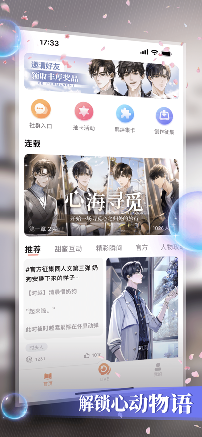 【原创社区欣赏不同视角下的他】专属社区功能让你不仅能欣赏其他玩家的创意作品,还可以分享自己对角色的理解,通过文字表达你的热爱,更有机会向官方投稿你的作品。