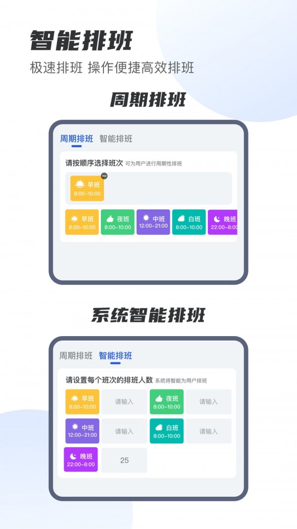 智能排班功能可根据预设条件自动生成班表,大幅减少人工排班的工作量和出错概率。共享排班功能支持将排班信息实时同步给团队成员,数据计算快速准确,界面设计清新简约。提供手动排班和周期排班两种模式,前者适合班次不固定的场景,后者适用于周期性轮班需求。多维度数据计算功能包含多种排班方式,如明细导出、单日多班次安排、循环排班等,满足不同行业的特殊需求。此外还支持班次颜色自定义、备注添加等细节功能,提升使用体验。