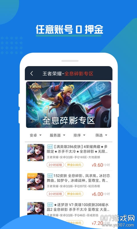娱梦免费租号平台是一款专为游戏爱好者打造的便捷租赁服务应用,汇聚了海量优质游戏账号资源。无论是热门手游、经典端游还是SteAM平台大作,用户都能以超低价格快速租到心仪账号,更有0元免费体验特权。平台采用智能上号系统,实现秒速登录,让玩家轻松享受高玩体验。所有账号均经过严格筛选,确保安全可靠,是游戏玩家探索新游戏、体验高级账号的理想之选。