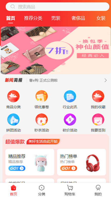 快捷清晰的购物界面,轻松滑动,随心所欲;界面设计简洁直观,商品分类一目了然。