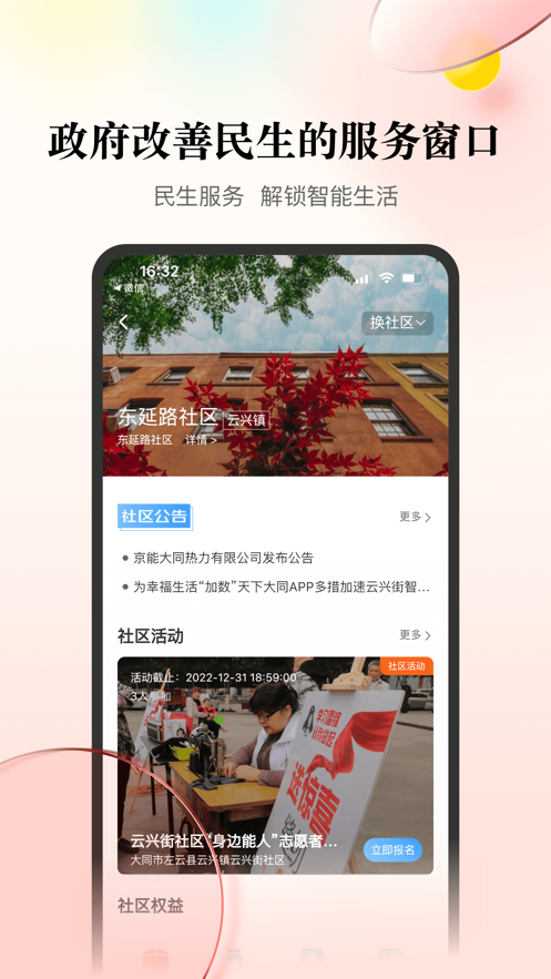 数智天下大同app是大同市数字政府建设的重要成果,也是市域治理一体化的创新实践。该应用通过深度整合政府公共服务资源与社会服务资源,构建起完整的数据闭环系统。依托"政务服务+民生服务"双轮驱动的服务体系,数智天下大同既能为市民提供各类政务事项的在线办理服务,满足公众查询、办事、咨询、建议和投诉等多元化需求,又能为各类民生服务场景提供线上解决方案。这种创新的服务模式不仅大幅提升了政府服务效率,更显著增强了市民的获得感和幸福感,是大同市推进智慧城市建设的重要里程碑。