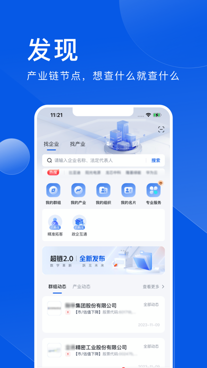 平台在金融投资领域表现尤为突出,提供标的查找功能,包括产业全景分析、展业支持、在线路演和客户管理;标的评价功能可生成企业深度画像和综合评价;投后/贷后管理功能实现动态监测和风险预警。这些专业工具能显著提高金融投资机构的业务效率和成功率,为投资决策提供可靠依据。