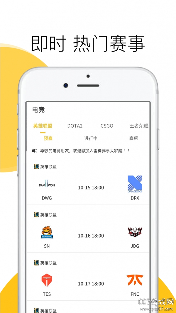 雷神赛事app为用户们提供市场上最热门的电竞赛事以及等,帮助我们第一时间了解热点头条,包括LPL、LCK等全球顶级联赛的即时资讯;