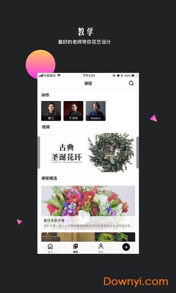 国内外资深花艺师的全程作品展示,让你随时随地欣赏到最新、最前沿的花艺设计。通过高清教学视频,你可以学习花器选择、花材搭配以及制作步骤,轻松掌握多种花艺技法和作品。即使工作繁忙,也能通过平台的即时教学模式,随时随地过一把“设计瘾”。此外,你还可以与国际知名花艺师互粉,结识更多行业领袖和爱花人士,拓展你的花艺社交圈。