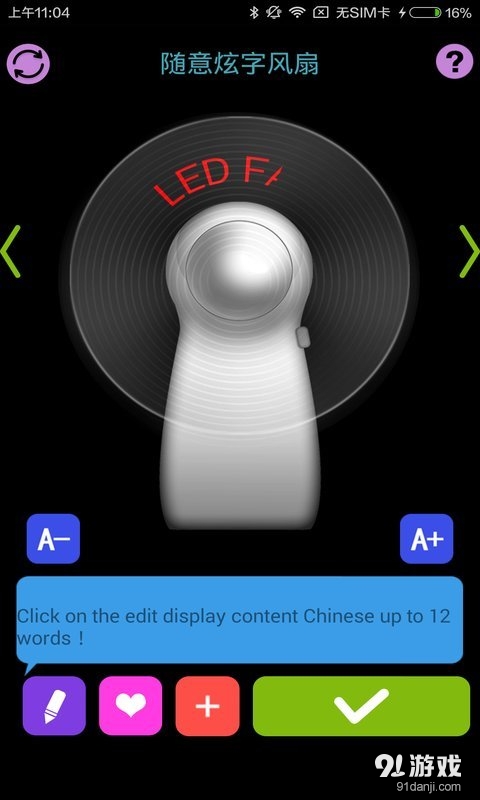 随意炫字风扇2手机版是一款专为安卓用户打造的创新型应用程序,它将LED显字风扇的硬件特性与智能手机的智能控制完美结合,为用户带来极具个性化的视觉体验。这款应用通过精准控制新型LED二级光板和小风扇的高速旋转,利用人眼视觉暂留原理,在风扇运转时呈现出清晰稳定的文字或图案。用户可以通过直观的手机APP界面,随心所欲地编辑想要展示的文字内容、特殊符号或简单图形,还能设置多种轮播闪烁模式,实现360度全方位的炫酷展示效果。无论是用于个人娱乐、店铺宣传还是活动装饰,都能带来令人惊艳的视觉冲击力。