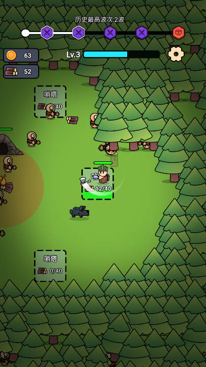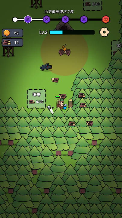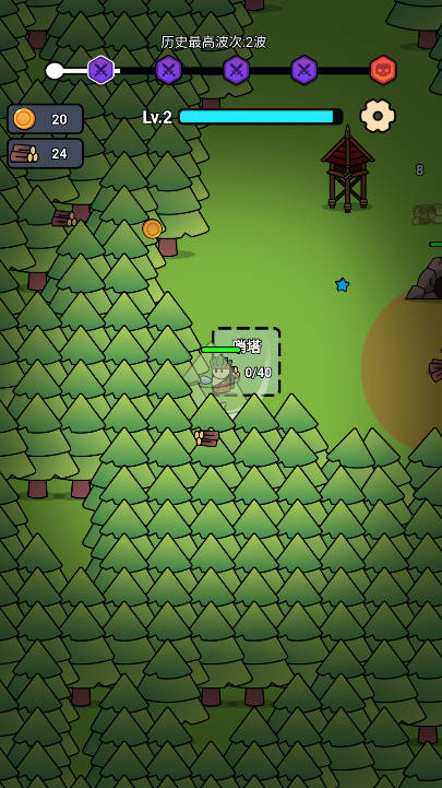 在游戏中,玩家需要控制原始人角色进行木材采集,这是建造防御设施的基础资源。通过不断伐木可以获得更多材料,用于升级营地防御能力。
