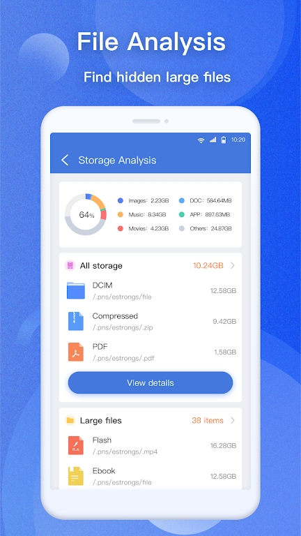 媒体文件一键播放功能让娱乐体验更流畅,各类文档支持即时预览查看。应用安装过程简单快捷,搜索功能响应迅速。视图模式可自由切换,满足不同场景下的浏览需求。整体操作体验流畅自然,各项功能设计人性化,是您日常文件管理的得力助手。