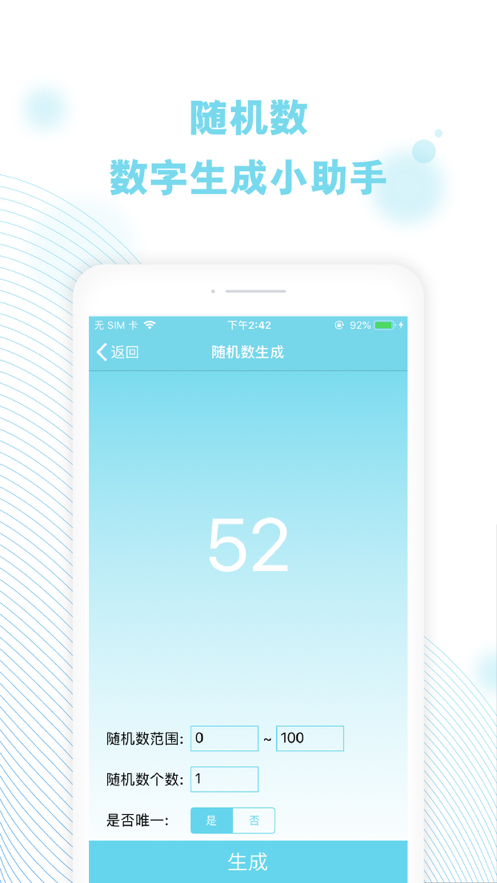 随机数生成器不仅能帮助选择困难症用户做决定,还能在游戏场合大显身手。支持批量生成上百个随机数字,让您轻松找到属于自己的幸运数字。