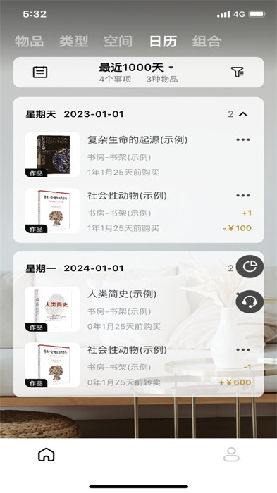 扩展物品百科库,新增对书籍、电影、音乐、游戏等文化产品的支持;物品规格输入支持小数点,满足精确记录需求;物品处理功能支持负数操作,便于库存管理;将"物品日记"更名为更直观的"物品日历";优化物品组合功能,新增分享选项。
