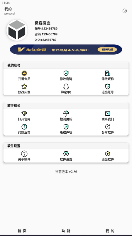 首页区域整合了超级手电筒、今日运势等生活小工具,让日常使用更加便捷;工具中心提供QQ辅助、系统优化等专业功能,满足进阶需求;软件专区汇集了各类实用APP,包括独家原创软件资源;个人中心则提供会员特权、专属客服等增值服务,打造全方位的用户支持体系。