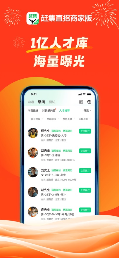 赶集直招商家版APP是由58同城和赶集直招联合打造的专业招聘平台,致力于为企业提供高效便捷的招聘解决方案。该平台整合了三大主流招聘网站的优质简历资源,拥有海量人才库,能够满足不同行业、不同岗位的招聘需求。通过智能算法匹配,系统可以精准推荐符合职位要求的候选人,大大提升招聘效率。用户只需10秒即可快速发布职位信息,并实现在线沟通、视频面试等全流程招聘服务,真正实现一站式招聘管理。