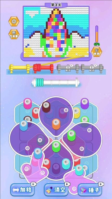 游戏最突出的亮点在于其独特的视觉效果,毛线的柔软质感和丰富的色彩搭配,让玩家在视觉上感受到舒适和愉悦。游戏中的毛线材质模拟真实物理特性,操作过程充满趣味性,仿佛真的在把玩一团真实的毛线。解开毛线纠结的过程被赋予了更深层的意义,象征着解开生活中的烦恼和压力,让玩家在游戏过程中获得心理上的释放。游戏还创新性地结合了毛线的物理特性,设计出许多独特的解谜关卡,玩家需要灵活运用各种策略,找到最佳的解法路径,这种设计大大提升了游戏的可玩性和挑战性。