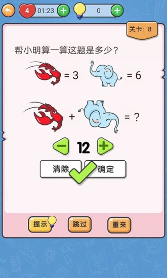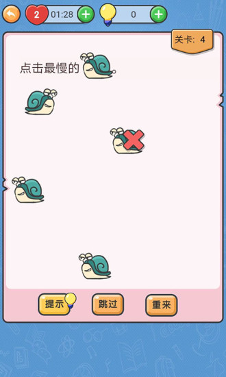 游戏拥有海量精心设计的题目库,每道题目都是独一无二的,确保玩家每次游戏都能获得新鲜感。虽然题目数量庞大,但游戏贴心地设置了每日挑战次数限制,让玩家既能享受解谜乐趣,又不会过度沉迷。游戏中的题目难度设置合理,既有轻松愉快的简单题目,也有需要深思熟虑的挑战性谜题,满足不同水平玩家的需求。此外,每道题目都设有时间限制,增加了游戏的紧张感和刺激性,让玩家在有限的时间内快速思考,锻炼反应能力。