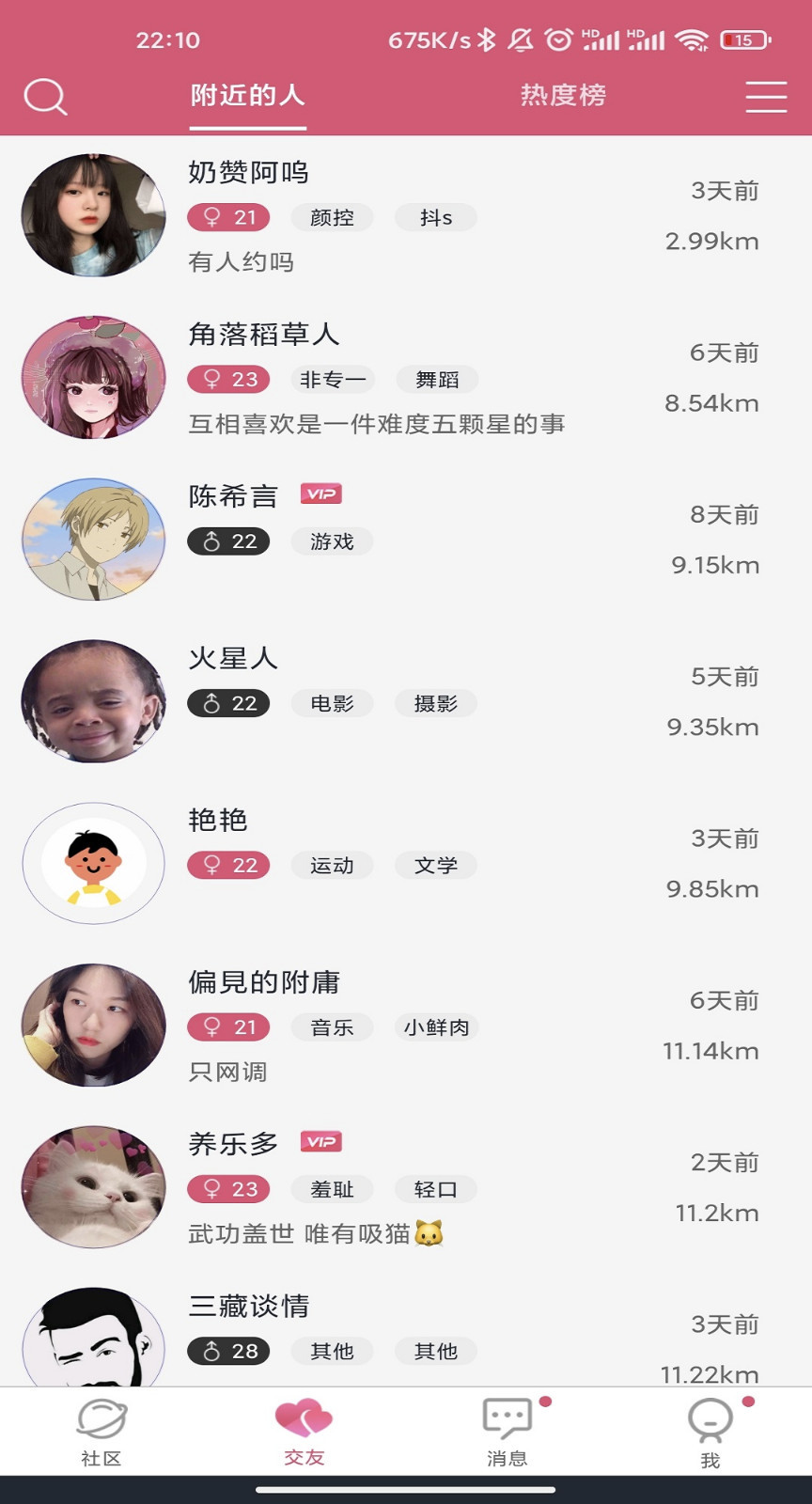 在圈圈交友app,您可以遇见来自全国各地的优质用户。这里有阳光帅气的男生,也有温柔可爱的女生,每个人都是经过严格筛选的真实用户。平台支持文字、语音、视频等多种交流方式,让您可以选择最适合自己的社交模式。当双方达成共识后,您还可以查看对方的详细资料,深入了解彼此。无论是想寻找知心好友,还是期待邂逅浪漫爱情,圈圈交友都能满足您的需求,快来下载体验吧!