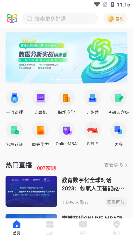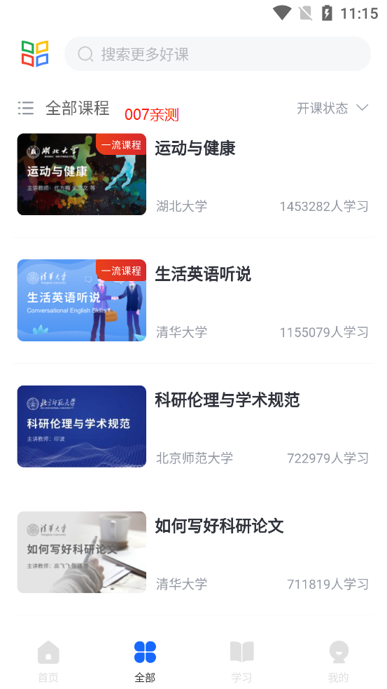 国外课程:来自麻省理工学院、加州大学伯克利分校、斯坦福大学、荷兰代尔夫特理工、澳大利亚昆士兰大学等世界一流大学,让用户足不出户就能享受国际顶尖教育资源。