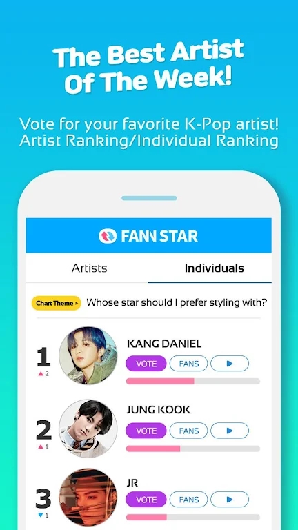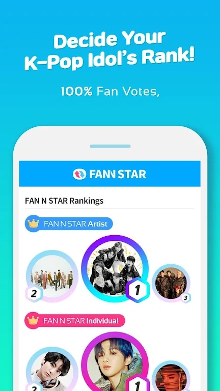 FANNSTAR是一款专为K-POP粉丝打造的偶像应援与互动平台,致力于为用户提供全方位的偶像应援体验。作为韩国最受欢迎的粉丝互动APP之一,它让全球K-POP爱好者能够随时随地为自己喜爱的偶像投票打榜,参与各种有趣的粉丝活动。无论您是想为偶像争取节目冠军、颁奖礼奖项,还是想与其他粉丝交流互动,FANNSTAR都能满足您的需求。