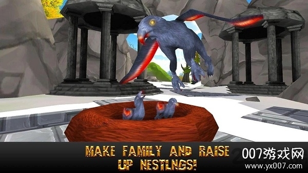 住格里芬的,强大的兽-半鹰,半狮,捕食者!从其他神秘生物保护你的领土,与雌性交配,提高了雏鸟和乐趣与模拟器格里芬3D!养育后代是游戏的重要玩法,幼崽会继承父母的基因特性,你可以通过训练将它们培养成不同类型的战斗精英。