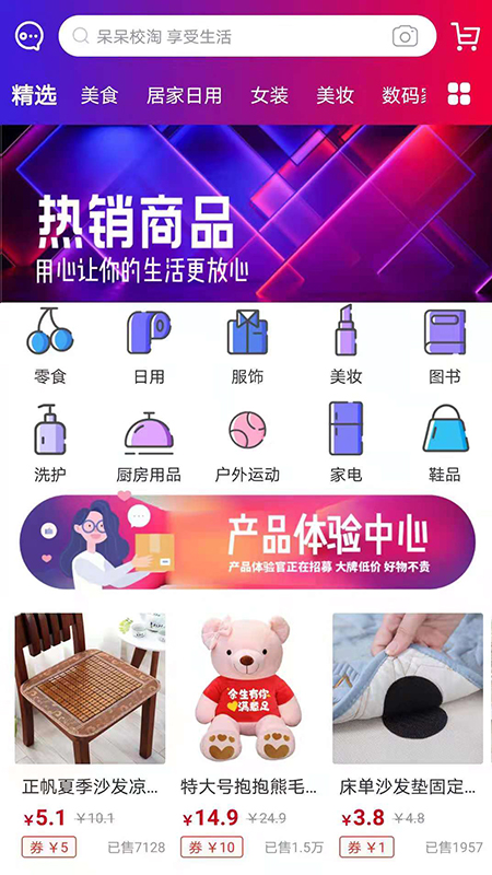 强大的搜索功能,一键搜索即可找到目标商品优惠券,支持语音搜索和图片搜索;