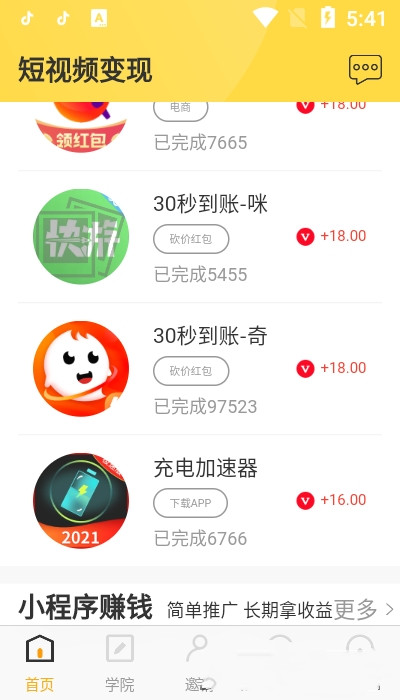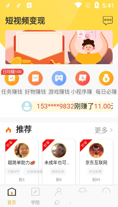 短视频学院APP专为短视频创作者打造,提供了许多实用的创作技巧和变现方法。平台适用于所有想学习短视频的用户,并且完全免费开放,用户可以通过热门视频轻松获利。此外,用户还可以通过完成平台上的各种任务来赚钱,平台还会安排专门的老师带队指导,确保用户能够顺利完成任务并获得收益。