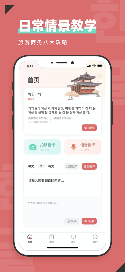 强大的中韩互译功能,支持文本、语音、图片等多种翻译方式,满足不同场景下的翻译需求。