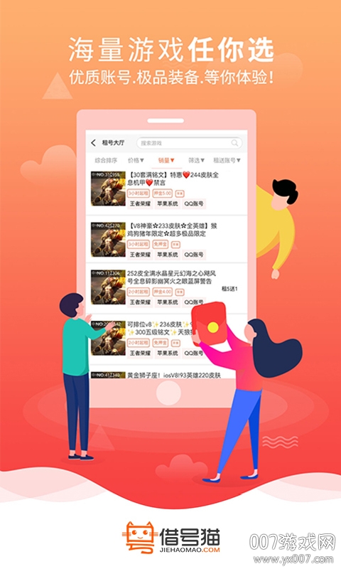 新人注册有抽奖免费租号名额,还有专属新人礼包等您领取;专业服务团队,提供7*24小时服务,随时解决用户疑问;借号猫服务全球的租号借号平台,覆盖全网百种热门游戏,全平台账号1元可玩。全品类账号、手游、加速器、影视、等高等级账号,让您安全方便体验高级账号的乐趣,支持多国语言服务;推荐用户推荐收益,邀请好友还能获得额外奖励。
