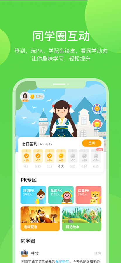 课文点读功能实现教材内容同步点读,官方正版授权确保发音标准;课内同步学由特级教师团队打造AI互动课程,覆盖小初高全科知识点;30余款学科工具如公式编辑器、几何画板等辅助学习,极大提升学习效率;巧考模块收录近10年各地真题,配合名师专项提分课程;教辅书功能提供重难点题目视频解析,帮助学生举一反三;同学圈打造趣味学习社区,通过签到PK、绘本配音等互动方式激发学习兴趣。