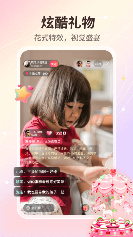 【酷炫礼物】丰富多样的虚拟礼物系统,支持自定义礼物特效,让你的打赏更具个性,为主播送上独特心意。