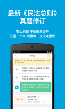 涵盖历年司考累计近2000道真题,并配有全面详尽的题目。针对2017年民法总则,时间更新题库题解,避免错题日题误导;平台还特别设置了错题重做功能,让考生可以针对性地强化薄弱环节,提高复习效率。
