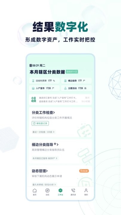 分类管理CRP是一款专为垃圾分类管理设计的智能化软件,它通过数字化手段将垃圾分类工作系统化、标准化,为工作人员和管理者提供了一套高效便捷的管理工具。该系统采用任务清单化、工作流程标准化、结果数字化的管理模式,实现了垃圾分类信息的实时共享与协同处理。工作人员可以依据系统提供的标准化指引进行操作,大幅提升了垃圾分类的规范性和工作效率。同时,系统会自动追踪记录每位工作人员的操作数据,生成详细的工作报告,帮助用户全面掌握工作进展和成效。
