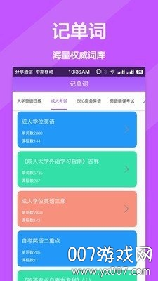 英文翻译官高效记单词版是一款专为英语学习者设计的全能型学习工具,旨在帮助用户轻松攻克单词记忆难题。这款软件集单词记忆、发音训练、翻译功能和阅读提升于一体,为用户提供沉浸式的英语学习体验。无论您是学生、职场人士还是英语爱好者,都能在这里找到适合自己的学习方式。