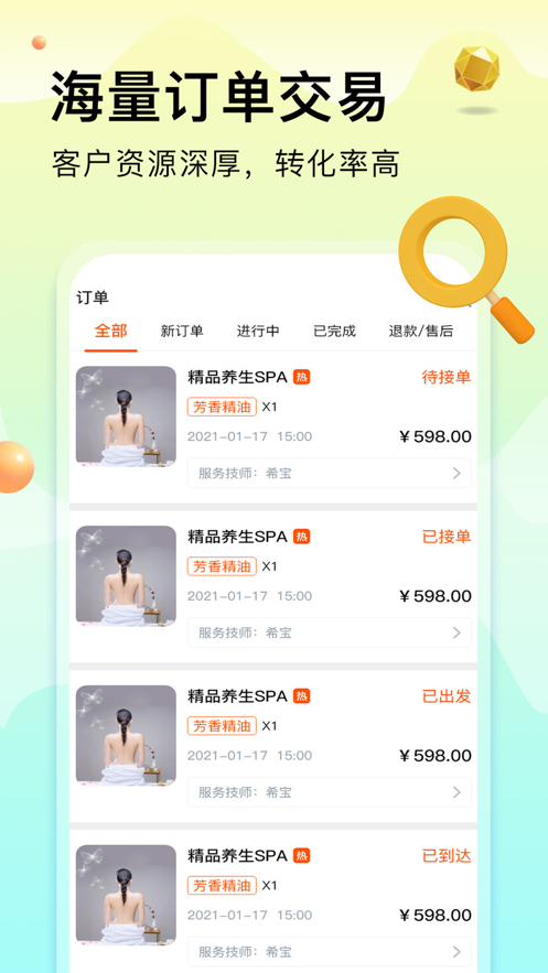 按摩到家技师版苹果版是一款专为按摩技师量身打造的上门接单服务平台,致力于为技师提供高效、便捷的工作体验。该平台采用创新的在线接单模式,让技师摆脱传统坐班束缚,通过实时定位功能轻松获取所在城市周边的服务订单。无论是经验丰富的资深技师,还是刚入行的新手,都能在这里找到适合自己的工作机会。平台涵盖了上门按摩、中医推拿、足疗保健等多种服务类型,满足不同客户的健康需求,同时也为技师创造了多元化的收入来源。