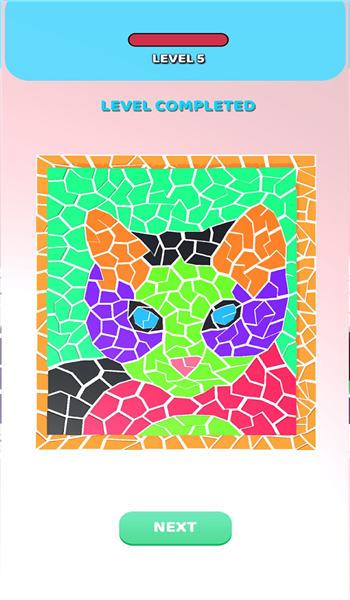 游戏采用直观的拼图玩法,玩家需要按住并移动拼图碎片,将其精准放置在正确的位置上,确保每个碎片的形状和颜色都与目标图案完美匹配。随着游戏进程推进,拼图碎片会逐渐增多,玩家需要仔细观察每个碎片的细节特征,通过耐心尝试将它们组合成完整的图案。完成当前关卡后,点击"NEXT"按钮即可进入下一关,随着关卡提升,拼图难度会逐步增加,带来持续不断的挑战乐趣。