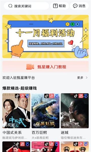 甄星赚app是一款专为影视爱好者打造的推广与创作平台,为用户提供了丰富的任务选择和高效的变现渠道。在这里,创作者可以根据自己的兴趣和能力选择合适的影视推广任务,通过分享优质内容获得收益。平台不仅提供高比例的分成机制,还确保收益数据实时更新,让创作者随时掌握收入情况。此外,甄星赚app的提现速度快,资金到账及时,完全解决了用户对资金流动性的担忧,让创作者能够更专注于内容创作和推广。每天都能赚取零花钱的扶持政策,进一步增强了平台的吸引力,帮助创作者长期留存。
