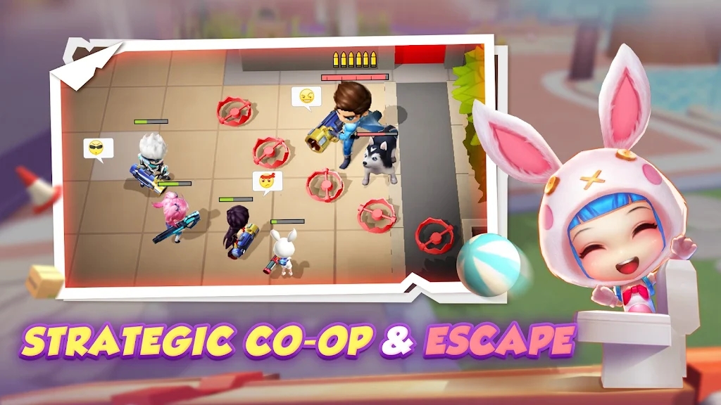 丰富多样的道具卡组系统,让你可以根据战况灵活搭配,在对决中力压追捕者;百变Q萌的角色造型和丰富的人物选择,满足不同玩家的个性化需求;精致细腻的游戏画风搭配流畅的动作表现,带来极致的视觉享受;炫酷的限定皮肤和多样的游戏玩法,让你在战场上成为最耀眼的存在;定期更新的游戏内容保证玩家始终能体验到新鲜感。
