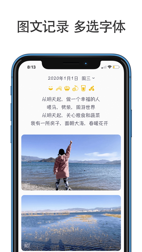 清新界面-提供白天/夜晚/护眼三种主题模式,可根据环境光线和个人喜好自由切换,有效缓解视觉疲劳。多种优美字体选择-内置十余款精心挑选的字体,支持字号大小调节,让每篇日记都独具个性。图文记录-支持插入多张高清照片,完美定格生活中的精彩瞬间。智能提醒-可设置每日记录提醒,帮助培养良好的日记习惯。时间轴-以时间线形式清晰展示日记内容,方便回顾特定日期的记录。照片墙-自动将日记中的图片生成精美照片墙,打造专属回忆画廊。