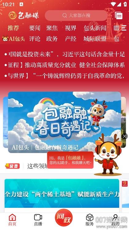 包融媒app又称黄河云app,是包头市官方权威的移动政务新媒体平台。它依托包头日报社的专业媒体资源,致力于打造一个集新闻传播、民生服务、政务办理、互动交流于一体的综合性信息平台。作为包头市的主流新媒体,它不仅提供最新最全的新闻资讯,还整合了各类政务服务和生活服务功能,成为市民获取信息、表达诉求、享受服务的重要渠道。
