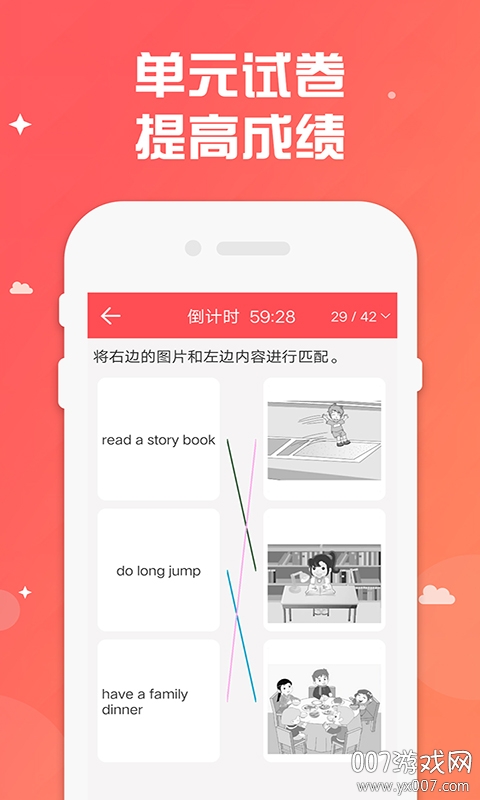 学生们可以灵活安排学习时间,利用碎片化时间进行高效学习,点读功能让学习过程更加便捷直观。平台汇集了海量优质英语教学资源,涵盖听力、口语、阅读、写作等多个方面,学生可根据个人学习进度和需求自由选择学习内容。在app中可以实现查缺补漏,系统会自动记录学习薄弱环节,方便用户能全方面进行学习,掌握所有知识点。软件内容覆盖小学各年级英语课程,从基础词汇到复杂句型循序渐进,满足不同阶段学习需求。