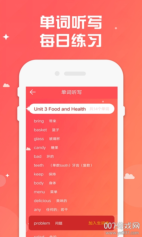结合例句学习,在学习单词的时候可以结合生动例句进行学习,通过情景记忆便于掌握单词的使用方法。同步教材,这里的英语单词资源是与新起点小学英语教材完全一致的,确保学习内容准确权威。拥有专业课程,这里汇集了专业外教录制的精品课程,通过情景对话等形式提升学生的英语应用能力。满足个性学习需求,每个人可以根据自己的年级、学习进度和预习复习的需要自选单词,定制专属学习计划。