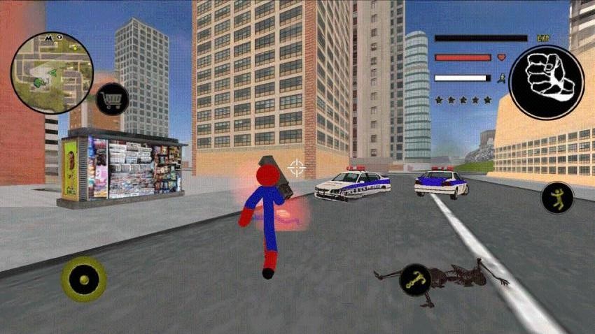 长按屏幕发射绳索勾住建筑边缘,通过调整角度和松手时机来控制摆荡幅度和方向。玩家需要熟练掌握绳索的物理特性,才能在复杂的城市环境中灵活穿梭。游戏还提供了多种战斗方式,玩家可以瞄准敌人使用手中的武器进行精准射击。除了基础武器外,游戏还包含多种特殊武器供玩家选择,每种武器都有独特的攻击方式和效果,玩家可以根据任务需求和个人喜好自由搭配。
