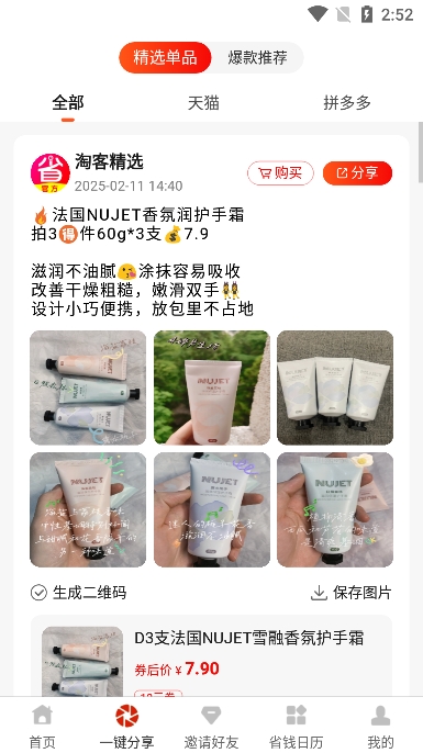 下方的一键分享你可以分享精选好物在平台上面给用户购买,每次成功分享并促成交易后,您都能获得相应的佣金奖励。分享方式多样,支持微信、QQ、微博等主流社交平台。