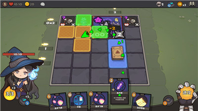 在战斗场景内,玩家可以通过下方的卡牌栏与各种物品进行互动。合理使用卡牌能产生特殊效果,比如改变方块形状或增强攻击力。同时要注意管理有限的资源,在关键时刻使用强力道具才能顺利达成关卡目标。