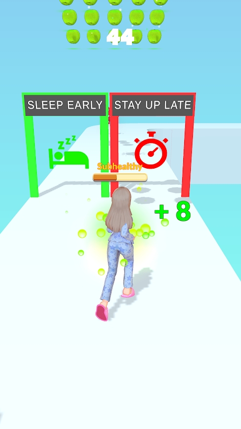 你们要做的就是朝健康的选项来奔跑,这才可以安全到达终点哦,错误的决定会影响角色状态;