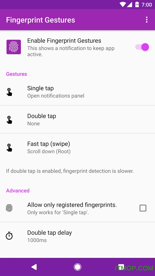 指纹手势应用能够为您的设备带来类似GooglePixel的指纹操作体验。无论是单击、双击还是滑动操作,都能让您的指纹识别区域变身多功能控制中心。这款应用特别注重用户体验,通过智能化的手势识别技术,让您的设备操作更加流畅自然。它不仅支持基本功能控制,还能根据用户习惯进行个性化设置,真正实现一触即达的操作体验,让手机使用变得更加智能高效。