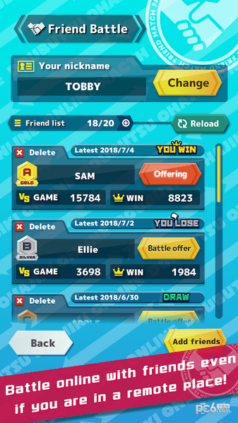 【联网对战】和全世界中的人们享受联网对战。游戏采用智能匹配系统,确保玩家总能找到实力相当的对手。只要联网,就能和全世界的人进行无限的对战。排行榜功能让你随时查看自己的全球排名。也可以和朋友使用同一台手机进行对战,支持本地双人模式,共享设备就能开启欢乐对决。