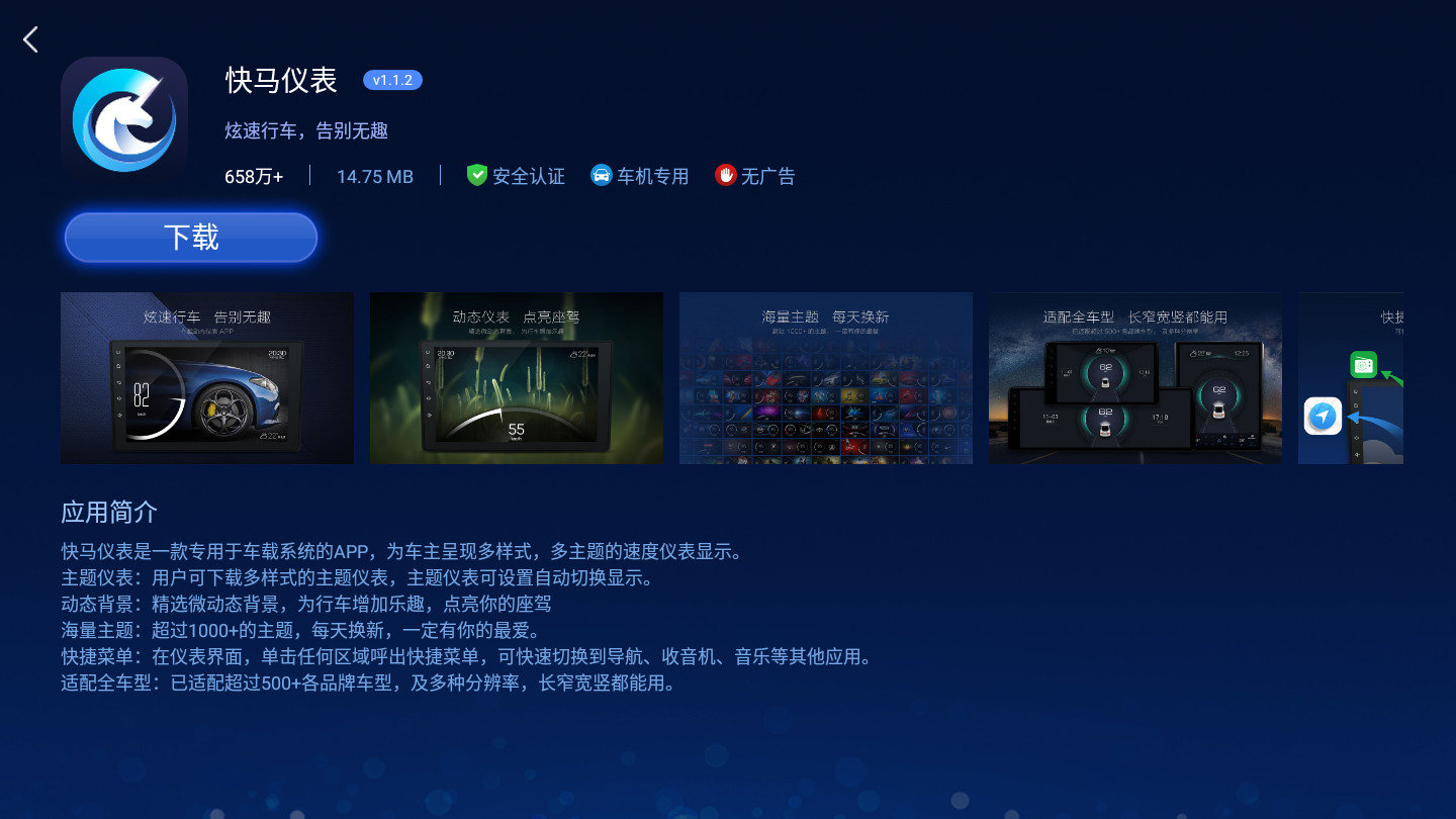 快马市场车机版APP是一款专为车主打造的智能车机应用平台,致力于为用户提供便捷高效的车载服务体验。该应用完美适配各类车型系统,通过强大的功能模块让车主随时掌控爱车状态。无论是日常出行导航、车载娱乐还是车辆管理,都能获得流畅的操作体验。丰富的应用资源库和人性化的交互设计,让驾驶过程更加安全舒适,真正实现智慧出行的理念。