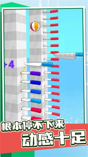 激发玩家斗志:每把刀的控制方式都独具特色,紧张刺激的挑战场景能够有效激发玩家的求胜欲望。玩家需要精准控制力量和方向,在千钧一发之际完成完美操作。